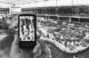 昨天,在紫金生態(tài)園中,工作人員通過手機(jī)上網(wǎng)觀看“智能溫室”的虛擬場(chǎng)景,輕點(diǎn)屏幕就可以顯示各項(xiàng)實(shí)時(shí)數(shù)據(jù)。