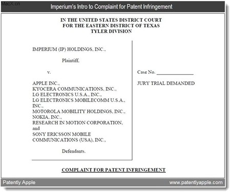泡泡網(wǎng)手機(jī)頻道3月21日 據(jù)國(guó)外媒體報(bào)道,近日一家叫做Imperium(IP)Holdings的公司對(duì)包括蘋(píng)果、京瓷、LG電子、RIM、索愛(ài)、諾基亞和摩托羅拉在內(nèi)的幾家智能手機(jī)廠(chǎng)商提起訴訟,指控這7家廠(chǎng)商侵犯其5項(xiàng)智能手機(jī)圖像傳感器專(zhuān)利。