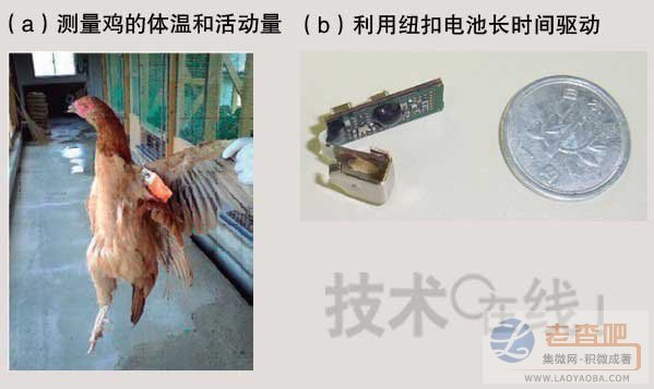 日本產(chǎn)綜研就開發(fā)出了利用無線傳感器終端來掌握養(yǎng)雞場中雞只健康狀態(tài)的系統(tǒng)(圖A-1)。該系統(tǒng)將溫度傳感器等嵌入裝在雞翅上的傳感器節(jié)點,以近距離無線通信來傳輸數(shù)據(jù)。目標是早期發(fā)現(xiàn)“禽流感”等病毒感染引起的災害,以阻止感染擴大!叭绻軌蚴冀K掌握養(yǎng)雞場內(nèi)雞只的細微健康變化的話,便可在實施捕殺等處置之前先拿出各種對策”(產(chǎn)綜研集成微系統(tǒng)研究中心副主任伊藤壽浩)。