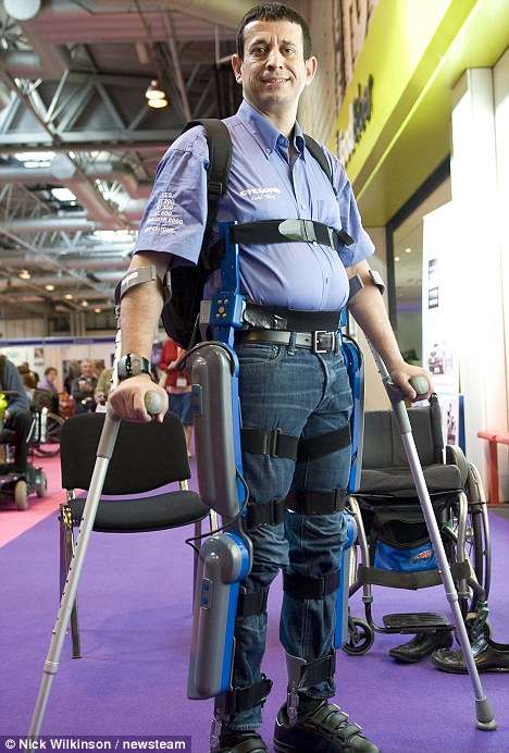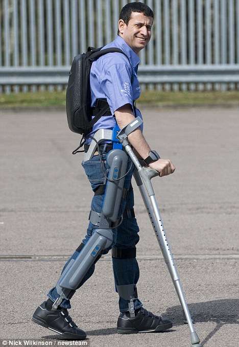 據(jù)英國《每日郵報(bào)》報(bào)道,ReWalk設(shè)備包括裝配發(fā)動機(jī)的腿部支架,傳感器,裝有電腦控制器和電池的黑色背包及一支幫助身體平衡的拐杖。穿上這條機(jī)器褲后,所有動作完全由用戶控制,用戶可通過手腕上的遙控腕帶發(fā)出站、坐、行,蹲等命令,身體前傾以激活身體傳感器,機(jī)械腿就可以行走了。停下來也非常簡單,只需要直起身體。