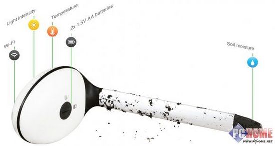 這款koubachi公司的wifi植物傳感器集成了濕度、光照以及溫度等多種傳感器,所收集的數(shù)據(jù)通過wifi發(fā)送至云端服務(wù)器就能幫我們輕松的解決過度澆水或澆水不足、光照不足或光照過度、溫度過低或溫度過高等問題,有效的幫我們?yōu)槲覀兊闹参锞谋M力。