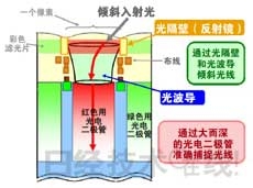 上述特點(diǎn)是通過以下技術(shù)實(shí)現(xiàn)的:[1]在微小尺寸的像素上形成大而深的光電二極管的高感光度光電二極管形成技術(shù);[2]通過降低寄生電容提高像素放大器的感光度,降低晶體管噪聲的半導(dǎo)體微細(xì)加工技術(shù);[3]攝像頭模塊、鏡頭與松下元器件自主開發(fā)的聚光構(gòu)造的優(yōu)化匹配技術(shù)。