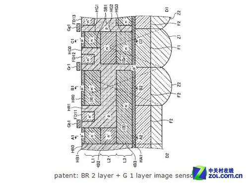 因而可以理解為這是一款混合式的傳感器設(shè)計(jì),一層為傳統(tǒng)拜耳傳感器設(shè)計(jì)的紅藍(lán)像素層,一層則為foveon的綠色層,也就是X3+馬賽克設(shè)計(jì)。這樣的好處是將最影響傳感器感光度的綠色層獨(dú)立出來,從而提高綠色的采集效率,因而新傳感器的感光性能應(yīng)該更好。我們期待這項(xiàng)專利能夠盡早實(shí)用化,相信屆時(shí)相機(jī)的高感性能將得到進(jìn)一步提升。