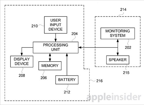 據(jù)悉,這項專利名為“耳機(jī)、耳塞或耳麥的運動檢測系統(tǒng)”。蘋果希望將運動傳感器植入耳機(jī)中,其會被集成在耳機(jī)的頂部或底部,當(dāng)用戶在運動時戴著耳機(jī)聽音樂,或者將耳機(jī)放在附近時,運動傳感器的健康監(jiān)測系統(tǒng)就會搜集體溫、排汗量和心率方面的數(shù)據(jù)。同時,耳機(jī)內(nèi)部還內(nèi)置了一個或多個加速度傳感器,用于收集精確的運動數(shù)據(jù)。