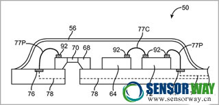 第一項(xiàng)專利名為“帶環(huán)境傳感器的電子設(shè)備”,描述了一種內(nèi)置多個(gè)運(yùn)動(dòng)傳感器的組件。該組件與柔性印刷電路連接,利用內(nèi)置的環(huán)境傳感器測(cè)量溫度、壓力、濕度、聲音等數(shù)據(jù)。