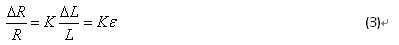 式中K對(duì)于確定購(gòu)金屬材料在一定的范圍內(nèi)為一常數(shù),將微分dR、dL改寫(xiě)成增量ΔR、ΔL,可得