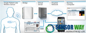 連接病人胸部的傳感器是心電圖預(yù)凝膠電極材質(zhì)的,據(jù)報(bào)道這種材質(zhì)具有非侵入性而且很舒適,所以戴著它的病人常常忘記它的存在。這款設(shè)備的電池續(xù)航時(shí)間有五天,而且用了一種新型無(wú)線電芯片,通過(guò)固定在墻上的橋接器可以進(jìn)行SensiumVitals設(shè)備間的無(wú)線通信以及醫(yī)院的IT基礎(chǔ)設(shè)施間的通信。