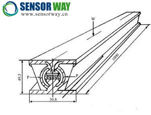 石英晶體敏感元件及壓電石英稱重傳感器在動態(tài)公路車輛稱重中的應(yīng)用主要有兩種方式。一種是利用多個(gè)墊圈式壓電石英稱重傳感器組裝成薄形電子輪重、軸重秤或條形稱重板。一種是利用多個(gè)石英晶體片和電極板直接安裝在特制的梁式承載器內(nèi),形成專用的壓電石英稱重傳感器,將其埋在公路表面截面為50×50mm的長槽內(nèi),形成動態(tài)公路車輛軸重秤。瑞士Kastler(奇石樂)公司研制的石英晶體動態(tài)稱重傳感器就是這種應(yīng)用的典型代表。它的總體結(jié)構(gòu)如同1m長的工字梁,所不同的是工字梁的腹板為圓形空心截面,實(shí)際上其空心是由平行于工字梁上下翼緣的兩個(gè)平面形成的矩形通孔,它的結(jié)構(gòu)如圖6所示。