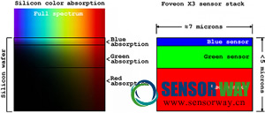 彩色圖像傳感器已應(yīng)用到幾乎所有常見(jiàn)的數(shù)碼相機(jī)和電子設(shè)備中(反射式的、全自動(dòng)的、網(wǎng)絡(luò)攝像頭、手機(jī)相機(jī)、平板電腦等等),這些傳感器由彩色濾光片(通常為紅、綠、藍(lán)三色,亦稱(chēng)RGB)及其下方的單色傳感器(黑色和白色)構(gòu)成。這種傳統(tǒng)結(jié)構(gòu)限制了傳感器中的每個(gè)像素只能感應(yīng)紅、綠、藍(lán)三色中的一種。要想從其它的顏色里面提取信息,就必須用到一些算法,而這一般都是制造商的最高機(jī)密。