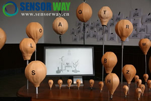 據(jù)報道,在這些形狀各異的沙袋上,印有不同的字母和數(shù)字以及傳感器,人們可以用手、腳踩出字母,踢出數(shù)字,或者用拳頭砸出一個句號,然后通過傳感器使信息傳送到電腦。