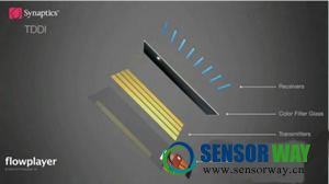 通過上圖我們不難看出,普通屏幕分解之后,我們看到其實屏幕是由蓋板、非集成式傳感器、顯示屏以及機身四個部分組成。其中傳感器又是由感應器和傳送器兩個組件構(gòu)成的,而這兩個組件所擔負的共同的任務就是處理手指按壓屏幕時所產(chǎn)生的靜電,并且通過信號轉(zhuǎn)換,將手指靜電轉(zhuǎn)化為觸控信號,最終完成手指在手機上的觸控操作。