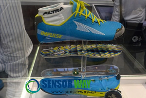 IFit在CES 2015上展示的Altra Halo智能跑鞋(可與智能手表連接)。Altra Halo可以對步態(tài)給出實時反饋。鞋底夾層中嵌入了這個傳感器。