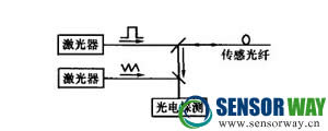 3、在電力系統(tǒng)光纜監(jiān)測中的應(yīng)用電力系統(tǒng)光纜種類繁多,加之我國地域廣闊,各地環(huán)境差異很大,所以光纜的環(huán)境也很復(fù)雜,其中溫度和應(yīng)力是影響光纜性能的主要環(huán)境因素。因此,在監(jiān)測光纖斷點(diǎn)的同時(shí)也對(duì)光纜所處溫度和應(yīng)力情況進(jìn)行監(jiān)測,可見對(duì)光纜的故障預(yù)警及維護(hù)意義深遠(yuǎn)。通過測量沿光纖長度方向的布里淵散射光的頻移和強(qiáng)度,可得到光纖的溫度和應(yīng)變信息,且傳感距離較遠(yuǎn),所以有深遠(yuǎn)的工程研究價(jià)值;诓祭餃Y光時(shí)域反射(BOTDR)的分布式光纖傳感系統(tǒng),采用相干檢測技術(shù),系統(tǒng)原理如圖1所示。