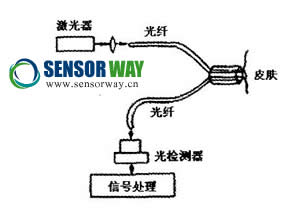 2、血流速度測量多普勒型光纖速度傳感器測量皮下組織血流速度的示意見圖2此裝置利用了光纖的端面反射現(xiàn)象,測量系統(tǒng)結(jié)構(gòu)簡單。