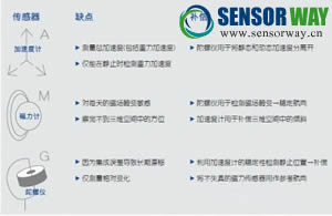 文章所描述的融合庫使用加速度計(jì)、磁力計(jì)和陀螺儀傳感器信號(hào)補(bǔ)償彼此的缺點(diǎn),并提供高精度、可靠和穩(wěn)定的方位數(shù)據(jù)。下面著重分析這些關(guān)鍵器件的優(yōu)缺點(diǎn),以及它們是如何補(bǔ)償彼此缺點(diǎn)的(圖1)。