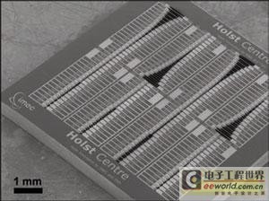 一款完整的傳感器芯片在電子顯微鏡下的掃描圖像。